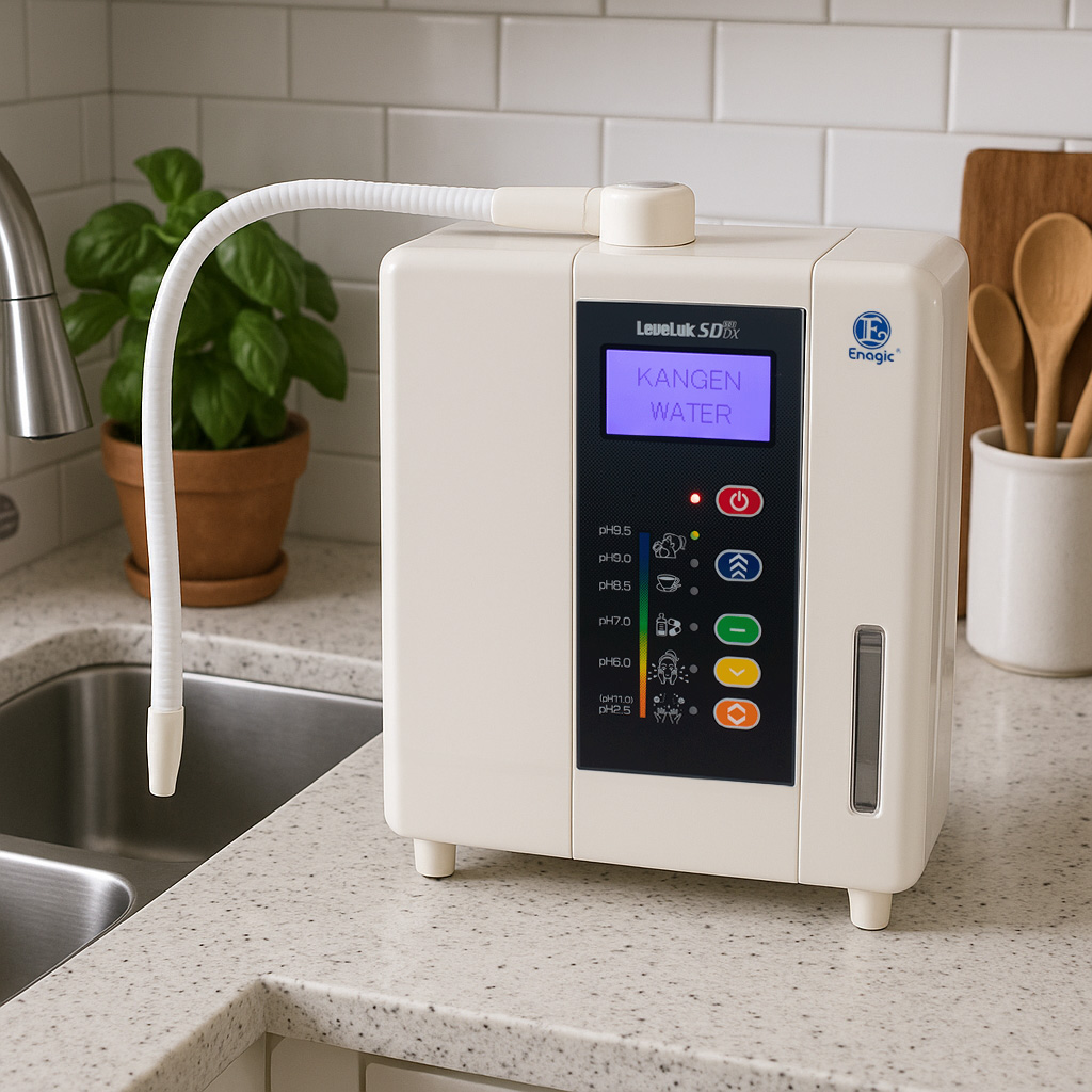 LeveLuk SD501 Enagic’s Flagship Model The industry-leading continuous ionized electrolysis water generator system, the SD501 is the finest machine in its class. The SD501 is the finest machine in its class, with the highest quality built-in electrolysis chamber on the market. This Kangen Water® filtration machine generates a continuous stream of 5 types of water. Generates: Strong Kangen Water, Kangen Water®, Neutral Water, Beauty Water, and Strong Acidic Water.